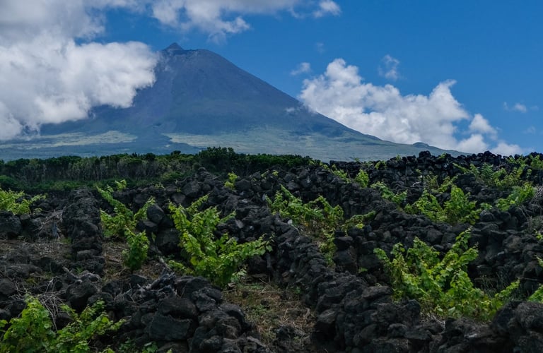 Onderaan de vulkaan Pico vind je tussen de rijen basaltstenen kleine groene planten. De stenen beschermen deze planten overdag van wind en zeewater en slaan warmte op voor 's nachts. Je zal het misschien niet gelijk verwachten, maar dit zijn de wijngaarden van Pico. Door deze unieke en handmatige manier van wijn verbouwen is Vinyard Criacao Velha ook uitgeroepen tot UNESCO Werelderfgoed. Je hebt verschillende wijnmakers waar je de (witte) wijn kan proeven. Wij bezochten de Azores Wine Company met een moderne architectuur die naadloos opgaat in de omgeving. Een leuke accomodatie in de buurt van de wijngaarden is Vinhas do Calhau.