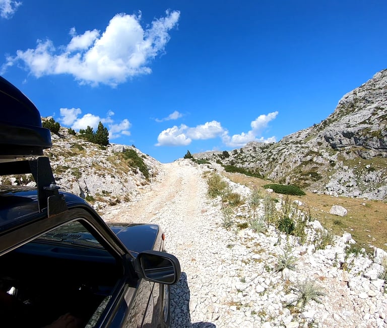 Wat Montenegro voor ons echt bijzonder maakt is de contrasten die het land biedt. Het ene moment wandel je door de bergen en valleien van Durmitor Nationaal Park en het andere moment lig je in de zon op het strand en geniet je van verse vis aan de kust bij de Adriatische zee. Het 4x4 avontuur met de Lada Niva maakte deze reis voor ons helemaal af. Je dagactiviteit bestaat uit het rijden door de bergen in de Lada Niva, op een tempo dat zelden boven de 20 km/u uitkomt, over stille wegen waar je urenlang niemand tegenkomt. Je wildkampeert midden in de natuur, met niets anders om je heen dan de bergen en de sterren, afgewisseld met overnachtingen bij locals die je graag verwelkomen met een bord huisgemaakt eten en een glas zelfgemaakte raki (ongeacht het tijdstip van de dag). Ook al spraken ze nauwelijks Engels, ze bleven gezellig aanschuiven bij het ontbijt of avondeten. Gesprekken verliepen via handen, voeten en geluiden, en juist daardoor voelde het contact puur. Deze combinatie van totale afzondering en oprechte ontmoetingen maakt het 4x4-avontuur tot een ervaring die je diep meeneemt in het hart van Montenegro.